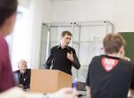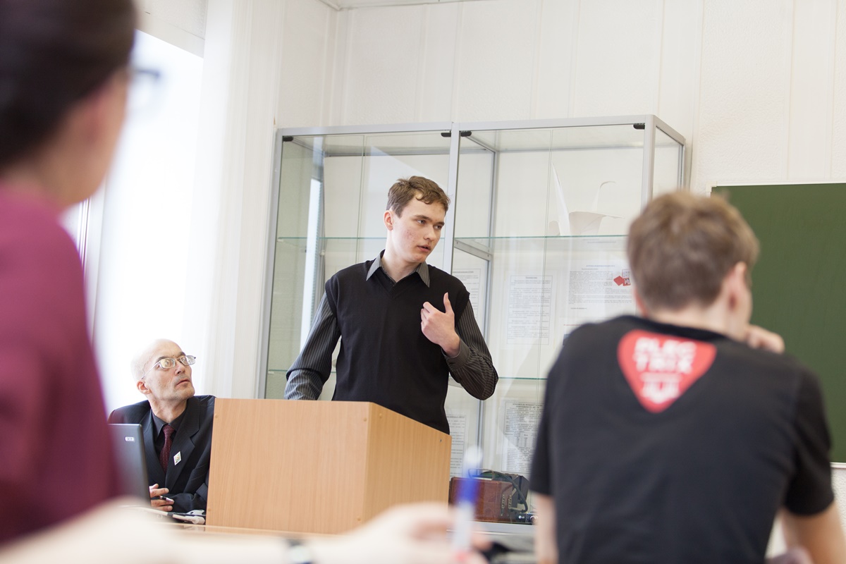 К ребятам обратился Денис Владимирович Корнеев, научный сотрудник Государственного научного центра вирусологии и биотехнологии «Вектор», председатель совета молодых ученых: «Мозг любого здорового человека позволяет решать самые разнообразные задачи, но наше мышление, наше образование – это операционная система, как у компьютера. И если даже на самый хороший компьютер сейчас поставить Windows 95, он хорошо работать не будет. Поэтому важно получать максимум образования – постоянно учиться, читать научную литературу. Еще важнейший момент – это поиск не только в науке, но поиск самого себя. Так, я вначале поступал в военное училище, потом учился в Новосибирском государственном техническом университете, затем закончил Новосибирский государственный университет: начинал с информационных технологий – «физическая информатика», потом ушел в биофизику и в итоге оказался вирусологом. Девиз Новосибирского государственного университета: «Мы не сделаем вас умнее – мы научим вас думать!» Если вы поступили в вуз и поняли, что идете не по своему пути, не бойтесь – думайте и идите в том направлении, которое вам интересно, развивайтесь и не останавливайтесь! И еще, не забудьте о том, что ученый должен иметь хорошую физическую подготовку – развивайтесь комплексно!»