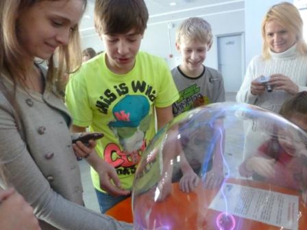 Перед «экскурсией» по звёздному небу экскурсовод представил различные телескопы, тюбики с едой для космонавтов, огромный стеклянный шар с электрическим полем, а также шар с аналогом газовой атмосферы Юпитера. Мы узнали много интересных фактов о том, как ведут себя космонавты, находясь в космосе, попадая в невесомость, как они проводят там дни. Затем мы приняли участие в небольшой викторине на тему «Невесомость» и посмотрели видео из космоса.