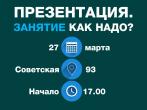 27 марта в 17.00 по адресу ул. Советская, 93 пройдет занятие «Презентация. Как надо?», в ходе которого участники поговорят о создании мультимедийной презентации.
