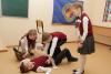 На станции «Первая помощь» необходимо было выполнить 2 задания: теоретические вопросы по оказанию первой помощи пострадавшему в ДТП; практический – задача по оказанию первой помощи пострадавшему в дорожно-транспортном происшествии с применением перевязочных материалов и подручных средств, наложением простых повязок, а также с практическим применением общедоступных средств, содержащихся в автомобильной аптечке. Ребята серьёзно подготовились к этому испытанию и с достоинством справились с ним.