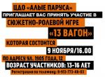 9 ноября на базе ЦДО «Алые паруса» пройдет сюжетно-ролевая игра «13 вагон» для участников 13-18 лет!