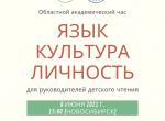 Новосибирская областная детская библиотека им. А.М. Горького приглашает руководителей детского чтения принять участие в Областном академическом часе «Язык – культура – личность», который состоится 8 июня в дистанционном формате.