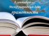 Ежегодно, начиная с 1967 года, 8 сентября во всём мире отмечается Международный день грамотности, проводятся специальные мероприятия с целью напоминания о важности грамотности в контексте человеческого достоинства и прав человека, а также для активизации усилий по созданию более грамотных и устойчивых обществ.