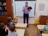 Ирина Владимировна подготовила для учащихся презентацию об истории возникновения и распространения этой интереснейшей игры по миру. Затем Вячеслав Юрьевич провёл викторину «Знатоки шахмат» со множеством интересных вопросов. Все дети правильно и быстро отвечали, чем продемонстрировали свои знания. Но без практики никак нельзя, поэтому на импровизированной шахматной доске-баннере каждый учащийся показал, где стоят в начале игры и как ходят шахматные фигуры.