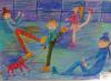 На ярком легковом автомобильчике с номером «Заяц» над бампером едет по лесу в красном колпаке жизнерадостный Косой. Здесь же в лесу беленькая кошечка с большими лучистыми глазами и три дружных Снеговика вышли погулять, взявшись за руки. Елка на фоне большой радужной Луны вносит свою яркую мелодию. Атмосфера уютного зимнего леса, населенного деловыми зверюшками, умиляет и радует зрителей. Городские жители тоже не скучают на рисунках детей – катаются на лыжах и коньках, приглашая и нас последовать их примеру.
