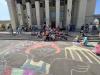 В этот прекрасный день мы начали праздник с традиционного фестиваля рисунка на асфальте, тематикой были выбраны любимые достопримечательности города Новосибирска. И, конечно же, серый асфальт перед Домом творчества очень скоро озарился самыми яркими красками и прекрасными рисунками, над которыми трудились девять команд-участников.